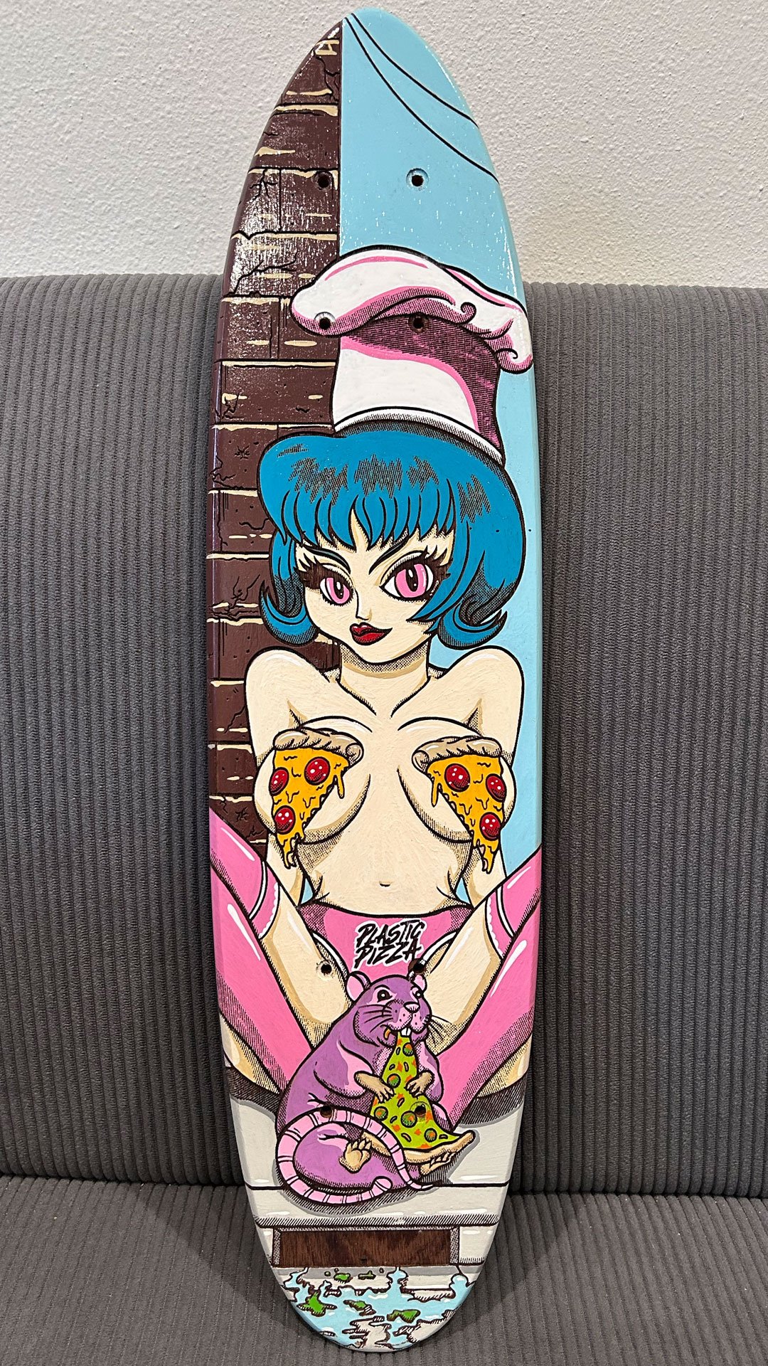 Laser Engraved | Custom Painted Woody Skateboard. Skateboards are CNC Laser Engraved & Hand Painted using enamel sign paints. All boards are limited to 1 of 1 and provided with skateboard wall mount.